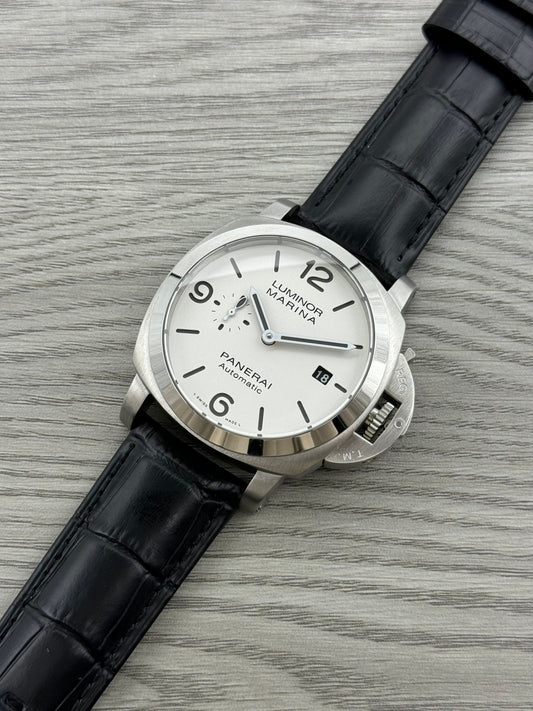 White - 904L Steel - Black Leather -Automatic - 44mm