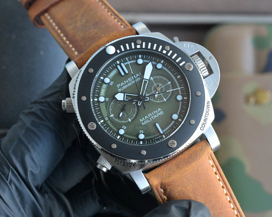 Green Silver -904L Steel - Brown Leather -Automatic - 44mm