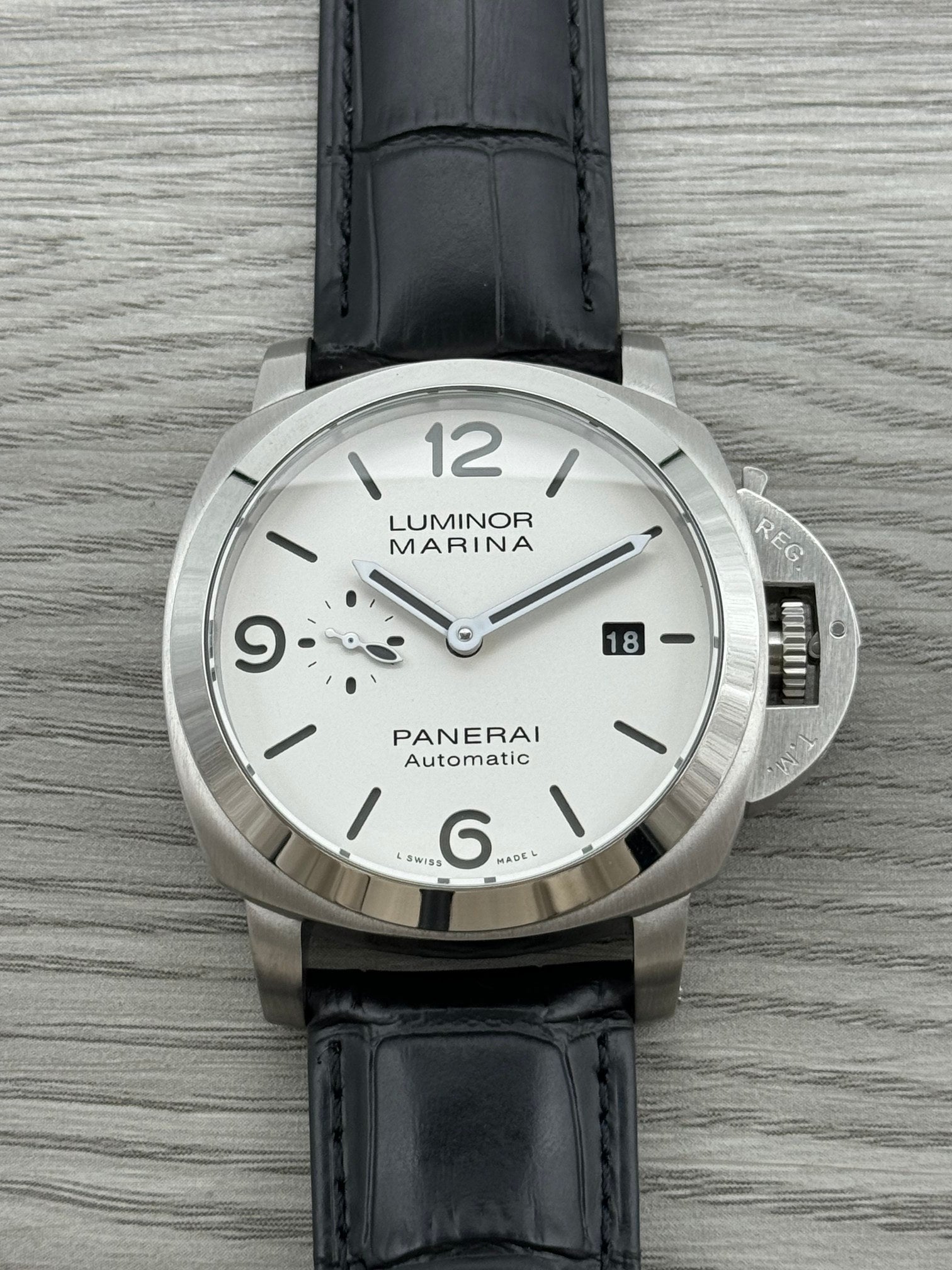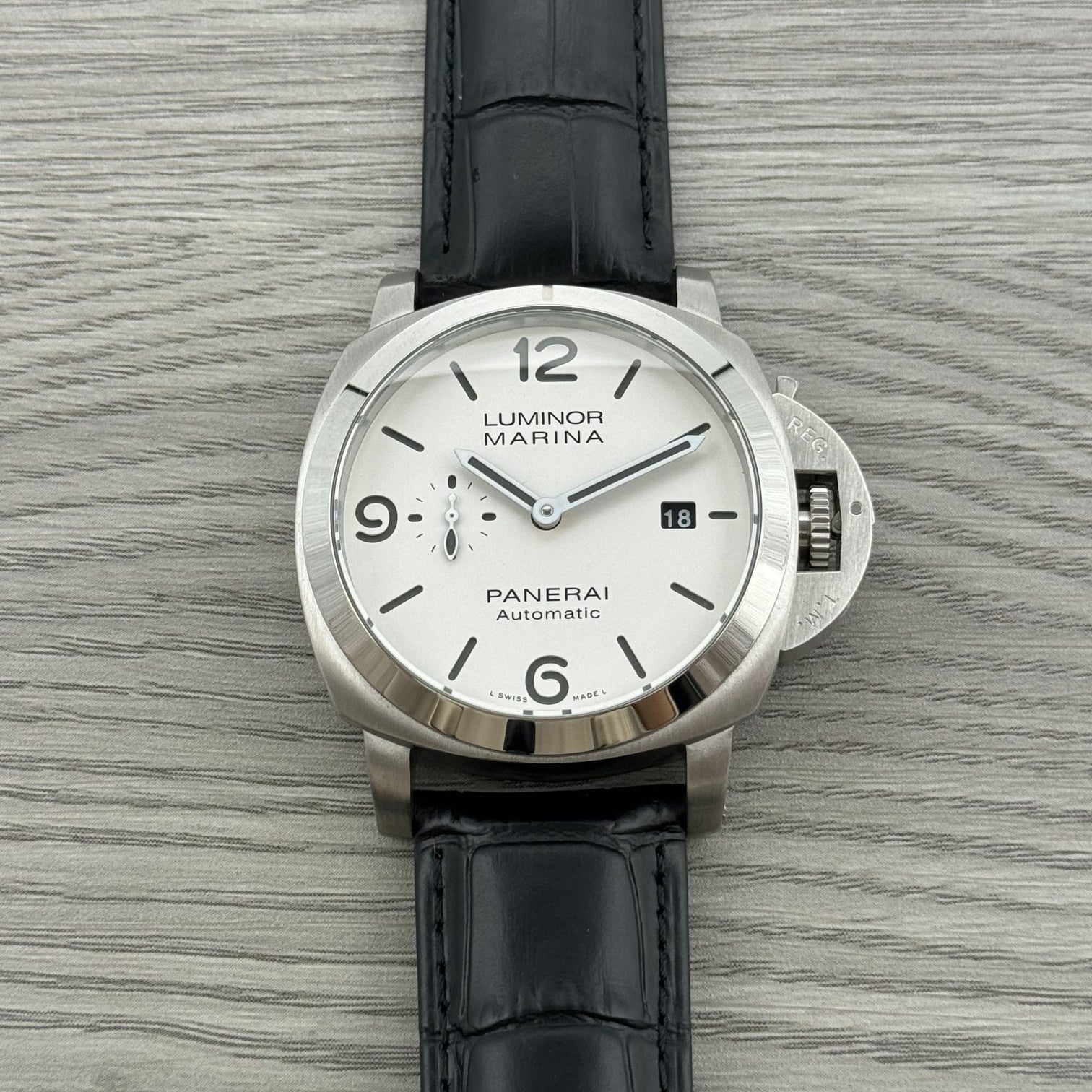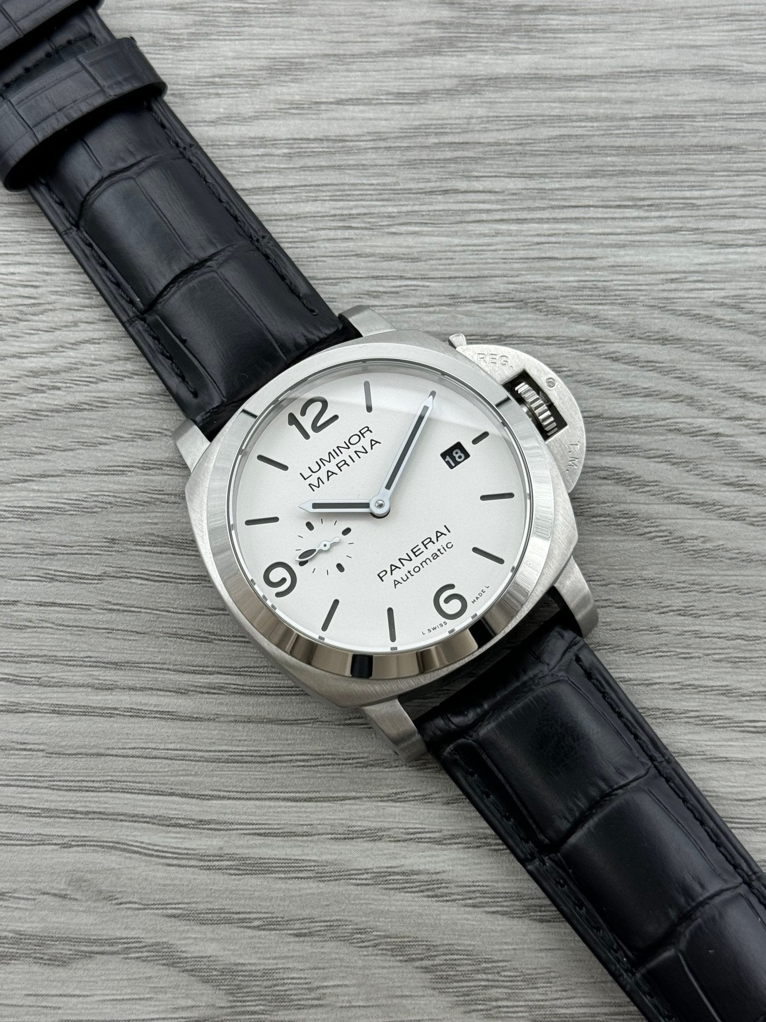 White - 904L Steel - Black Leather -Automatic - 44mm